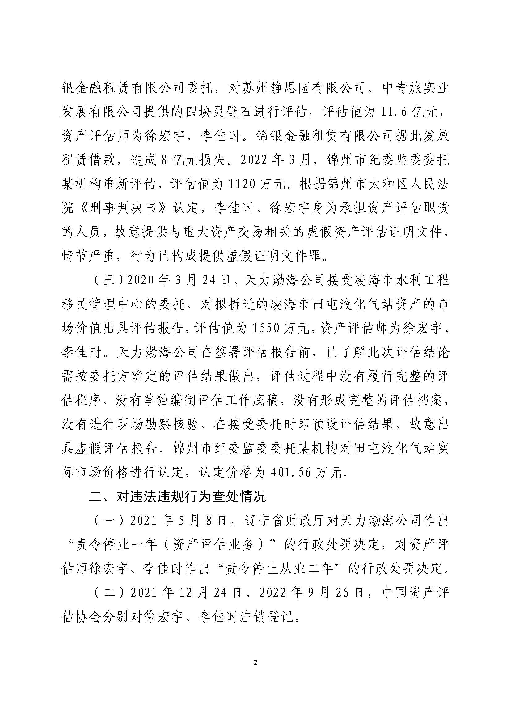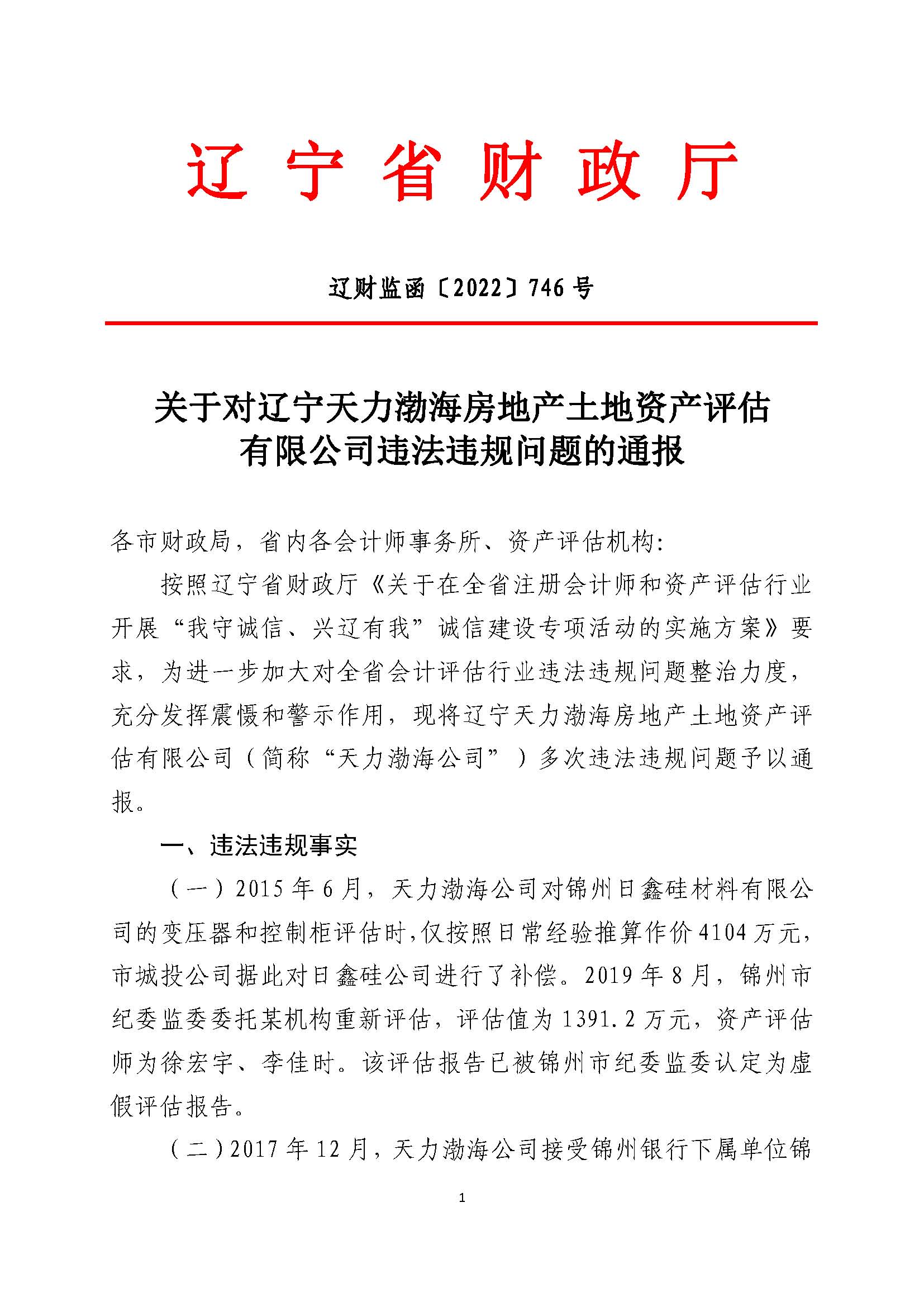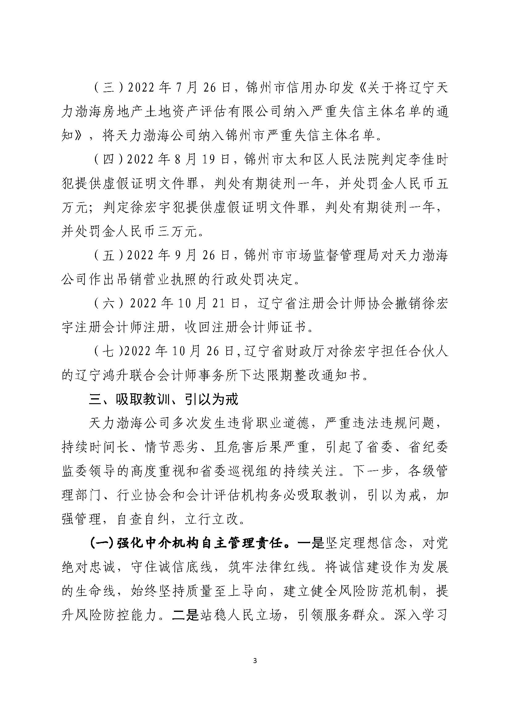 关于对辽宁天力渤海房地产土地资产评估有限公司违法违规问题的通报