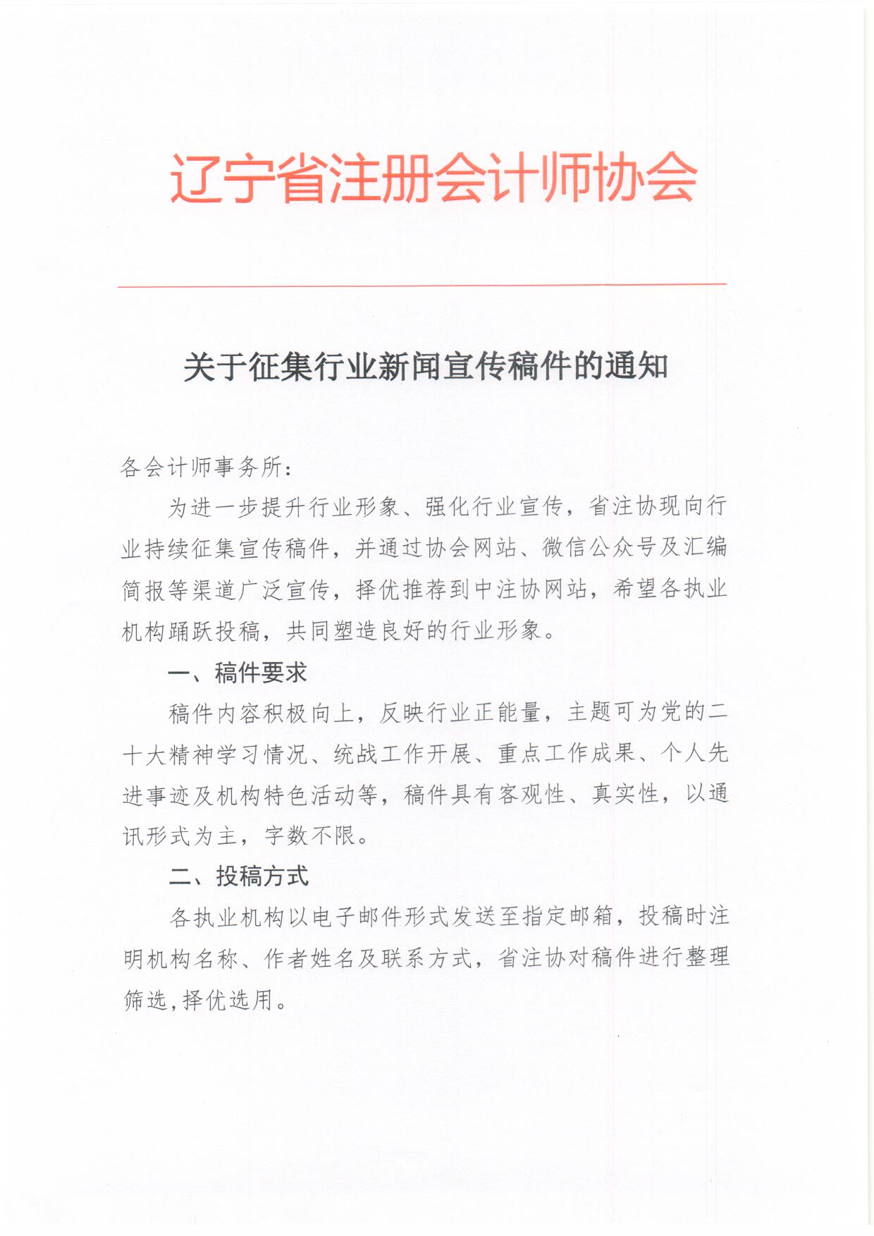 关于征集行业新闻宣传稿件的通知